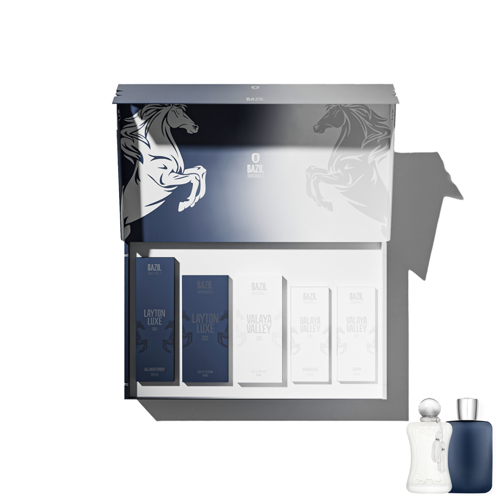 ادخل عالم الأناقة مع Layton Luxe، العطر الذي يفتتح برشّة دافئة من التفاح والتوابل، ليتناغم مع قلب زهري راقٍ ويستقر على قاعدة فاخرة من الفانيليا والأخشاب